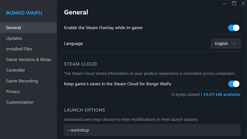 - Open Steam Library, find BongoWaifu