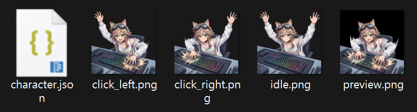 Image characters are the simplest way to add a custom cat. Just prepare 3 PNG files and a character.json.